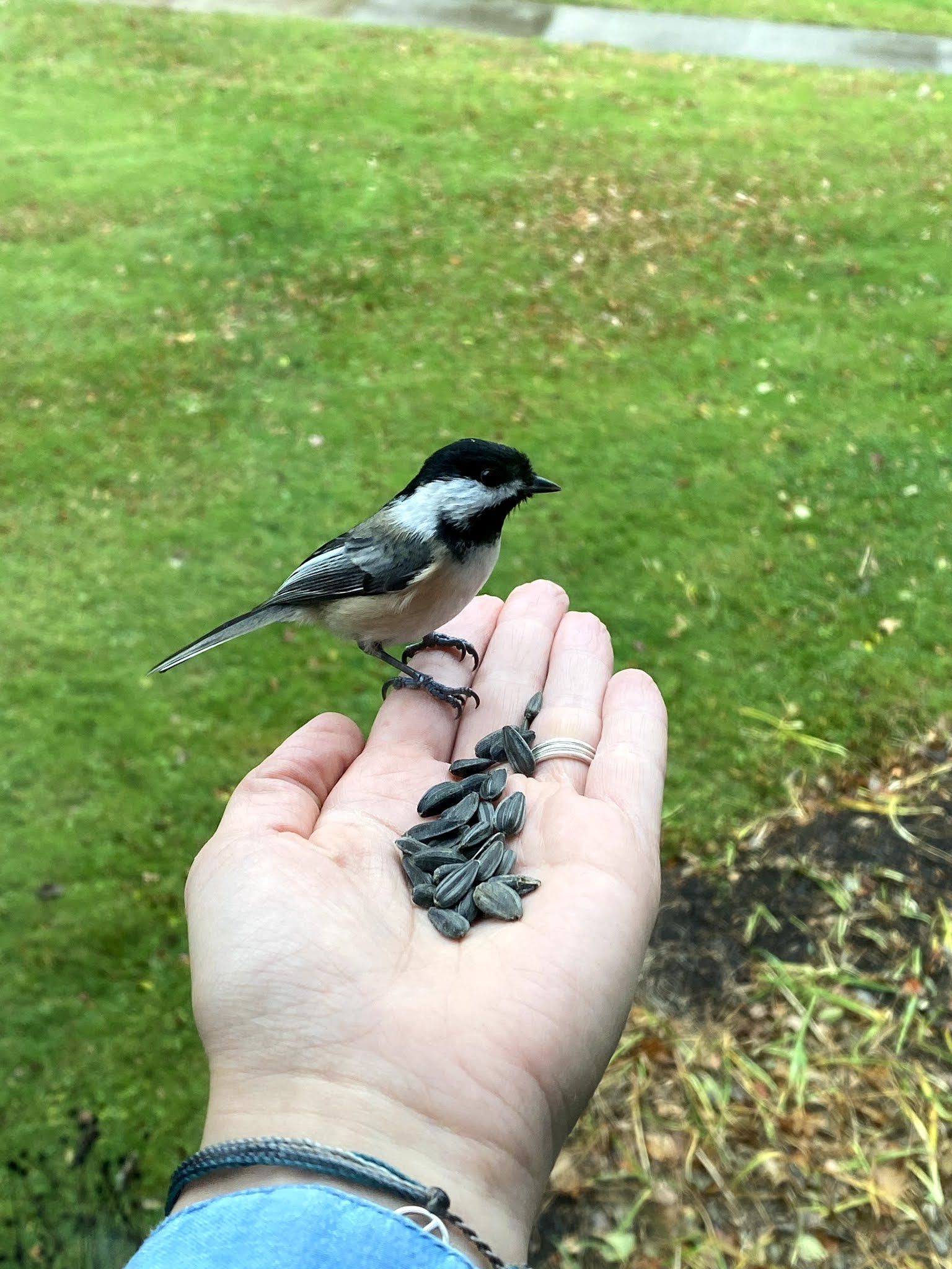 One of my sisters had told me that she was able to get birds to land directly in her hand when she held food there. A bird-tamer of sorts, she showed up at the same time each day, and the birds, as smart as they are, began showing up with her. It wasn’t long before she literally had them eating out of her hands!