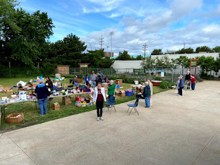 Hosting an outdoor giveaway at the food pantry with items donated by the Benedictine community.